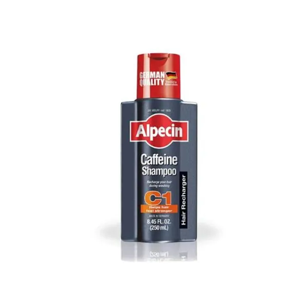 شامپو آلپسین C1 با کافئین خالص، ریشه مو را تحریک میکند و گردش خون را افزایش میدهد تا رشد مو را حمایت کند و ریزش را کاهش دهد. این شامپو برای موهای نازک و ضعیف ایدهآل است و موها را ضخیمتر نشان میدهد. فرمول بدون سیلیکون آن، موها را بدون سنگین کردن تمیز میکند و از ریشه تغذیه میکند. با استفاده روزانه، موها قویتر و سالمتر میشوند. مناسب برای مردان بالای 18 سال، اما برای همه قابل استفاده است. حجم 400 میلیلیتر آن، برای مصرف ماهانه کافی است. مطالعات نشان میدهد کافئین میتواند فولیکولها را فعال کند.